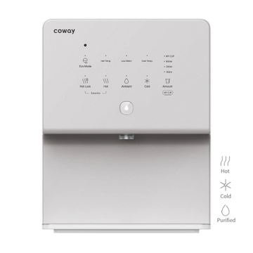 The Coway premium water purifier CHP-6330L provides hot, cold, and ambient water with a sleek and compact design. It features an advanced multi-stage filtration system, ensuring clean and safe drinking water by effectively removing impurities, harmful substances such as microplastics, and odors.